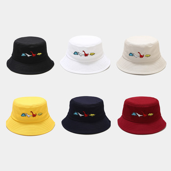 Nuevo lindo pequeño dinosaurio bordado pescador sombrero de moda Ins Primavera Verano Casual plegable sombrilla para hombres mujeres