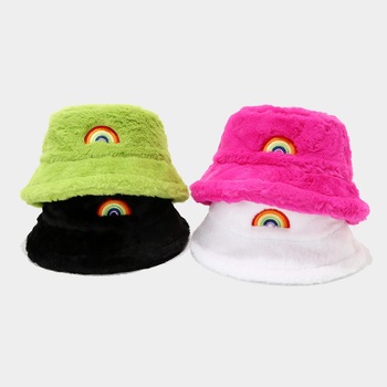 Sombrero de pescador de moda para mujer europea americana Otoño Invierno nuevo bordado de arcoíris sombrero de cubo cálido grueso para sombrero al aire libre